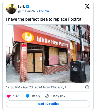 If I didn’t know any better, I would describe it as apocalyptic. This is nothing short of a tragedy for people from Chicago who grew up in the suburbs. Marketing girlies have no where to WFH now. Local neighborhood boyfriends have no where to grab a mediocre (at best) cup of coffee. Where will gay sons and thot daughters buy their groceries now?? (To be fair, I don’t think anyone actually grocery shopped there — if you did, please see me after class. I just want to talk.